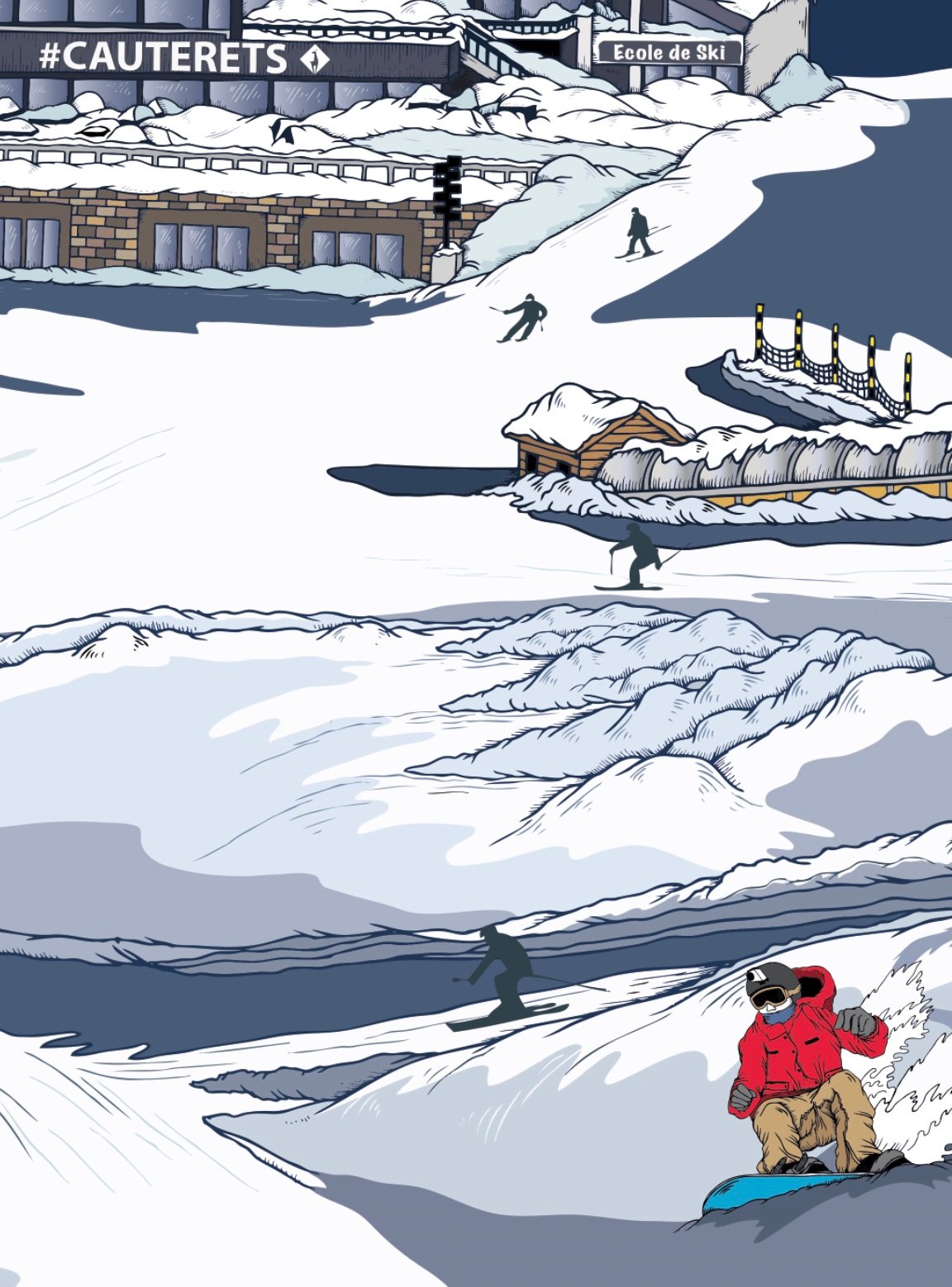 Découvrez cette affiche illustrée de Cauterets, au coeur des Pyrénées, entre traditions montagnardes et charme intemporel. Située aux portes du parc National des Pyrénées, cette petite ville de montagne aux allures élégantes et raffinées offre l'hiver un domaine skiable appelé Le Cirque du Lys avec 36km de pistes qui s'étendent sur plus de 700 hectares.