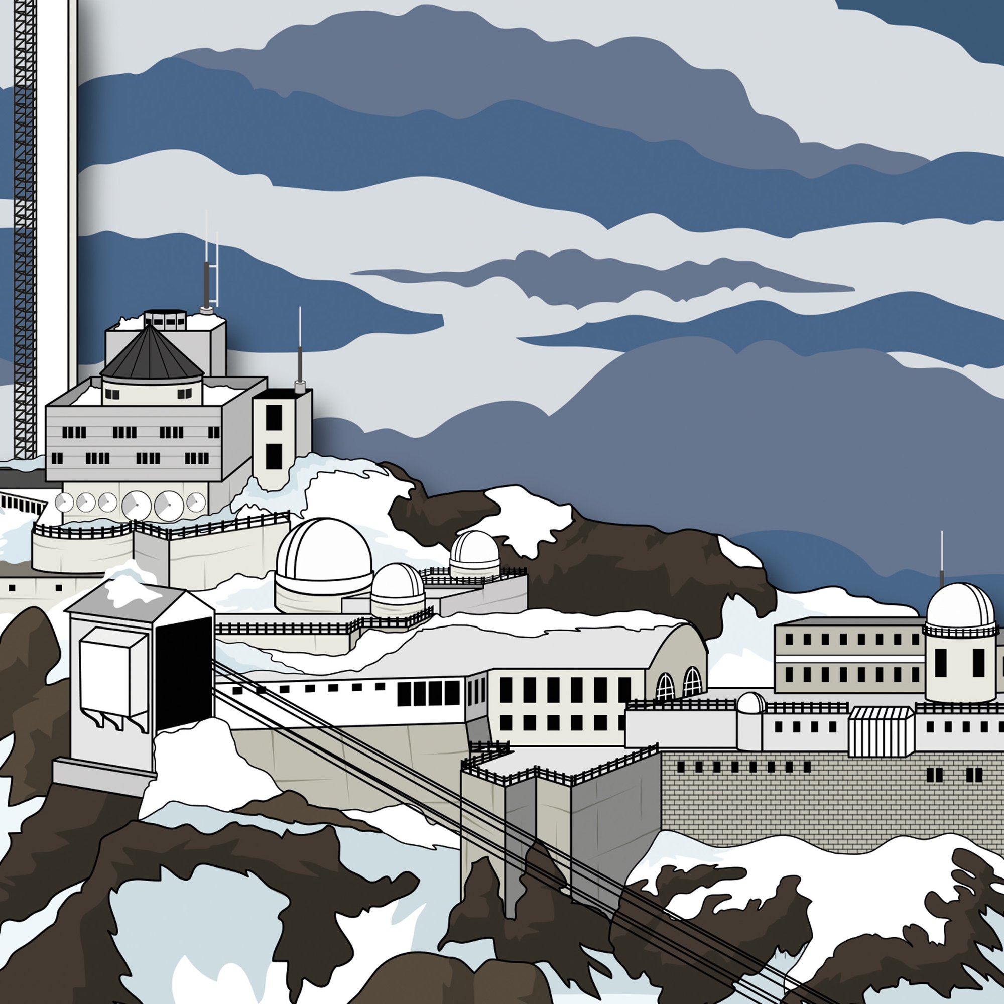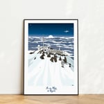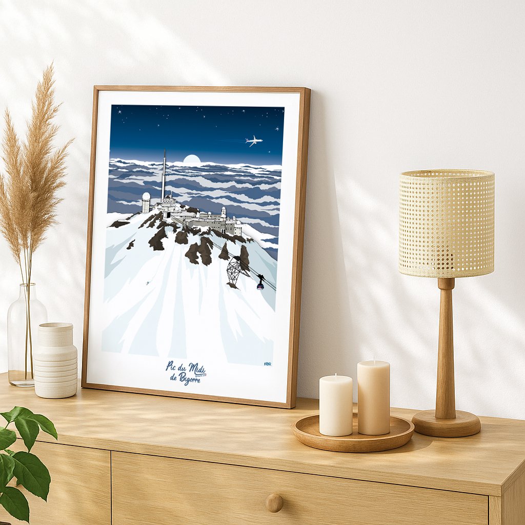 Découvrez cette affiche illustrée du Pic du Midi de Bigorre, au coeur des Pyrénées, célèbre édifice du massif Pyrénéen qui jouit d'une vue époustouflante. Endroit très prisé par les amoureux de la montagne, ses larges terrasses perchées à 2877m d'altitude offrent un panorama unique sur toute la chaine Pyrénéenne. Pensée comme une oeuvre décorative authentique, cette affiche capture l'atmosphère unique du Pic du Midi de Bigorre. Un visuel idéal pour tous les amoureux de montagne, ski et snowboard ou de nature préservée.